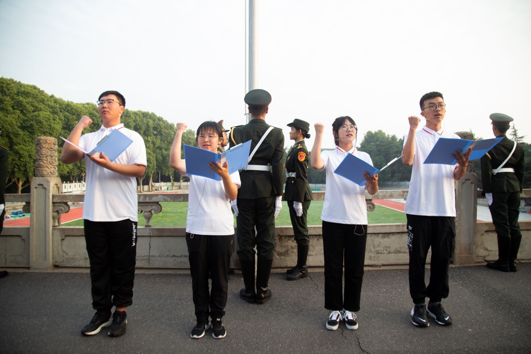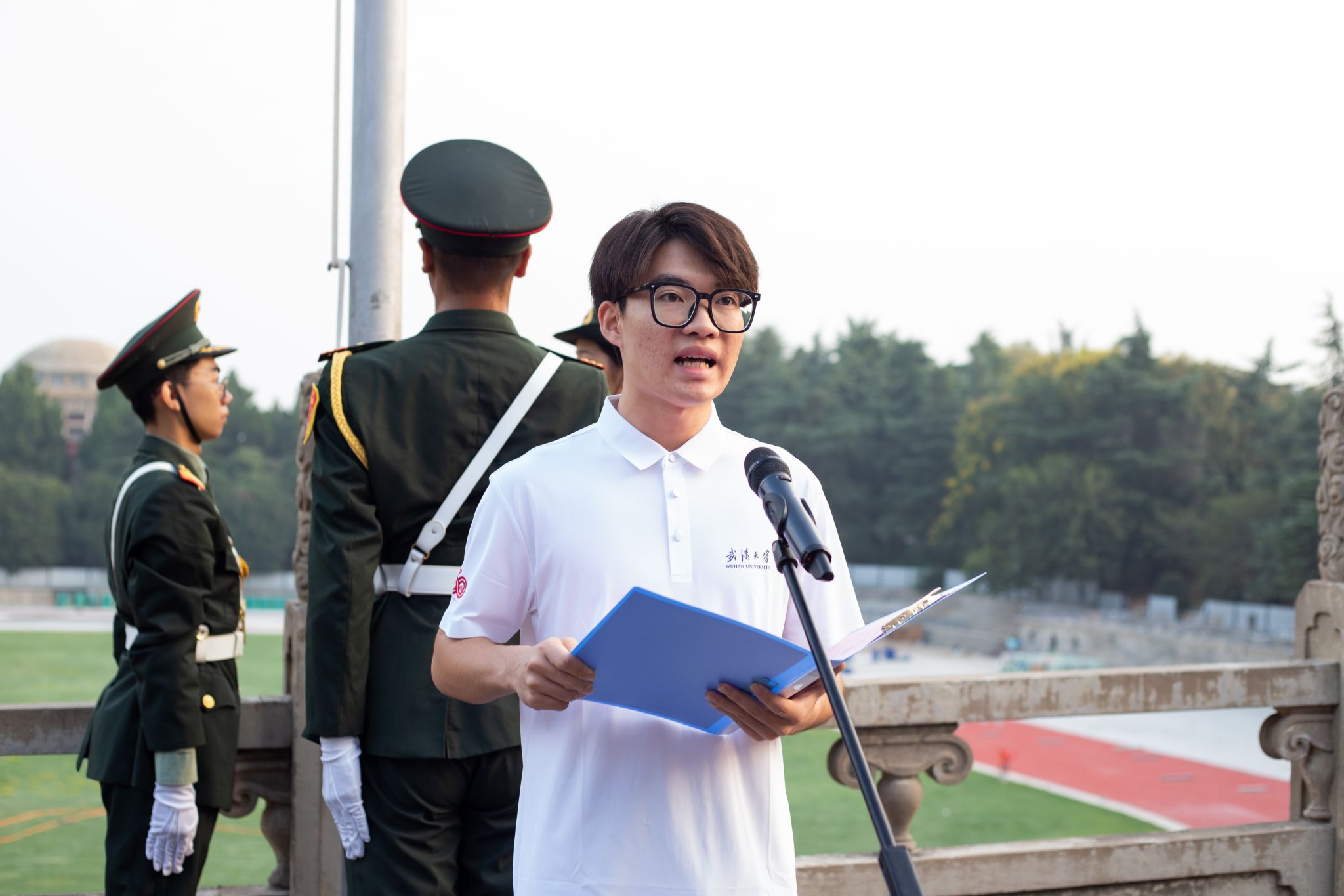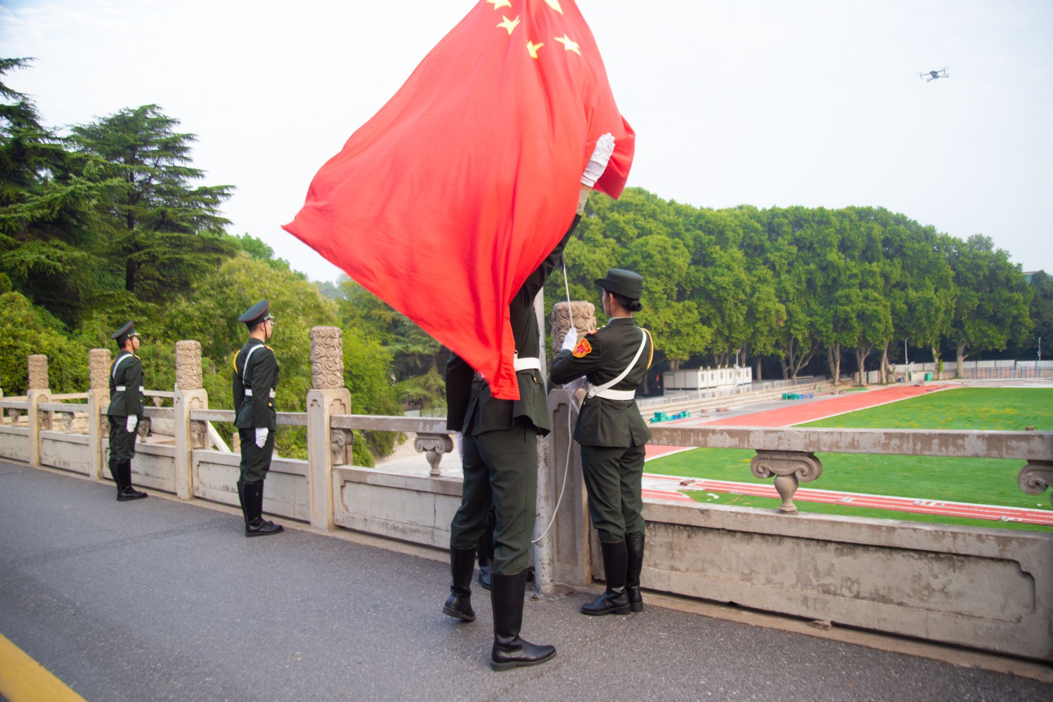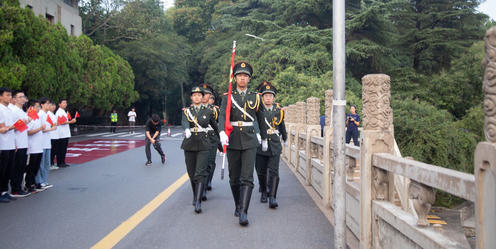 最后,全体师生面向国旗许下庄严承诺,齐喊“铭记历史,吾辈自强”。历史所启示的真理回荡在珞珈上空:正义必胜!和平必胜!人民必胜!