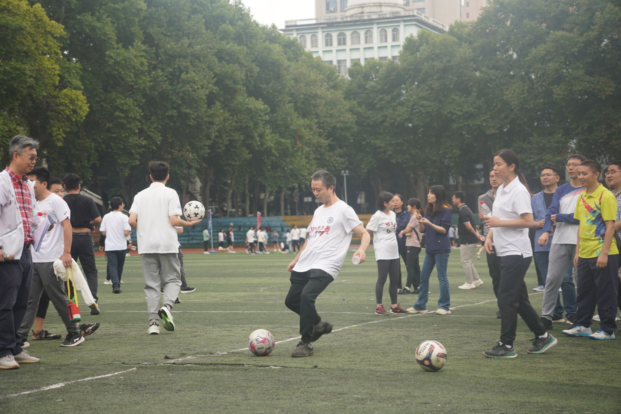 开幕式结束后,秋季师生运动会的各项比赛正式开始。技能型、悬浮型、迷路型,解锁“滚铁环”的多种打开方式;轻推、高吊、弧线、直射,探索“足球射门”的多种完成方法;“3 2 1 转”“3 2 1 跑”,找出“旋转扶棍”的最优解决方案……大家“心往一处想,劲往一处使”,携手夺桂冠。老师们化身运动达人,十八般武艺尽数彰显;同学们默契配合,用新生代的方式打开竞赛新局面。场边的欢笑声、加油声一声更比一声高,大家用热情驱散凉意,用激情点燃清晨。