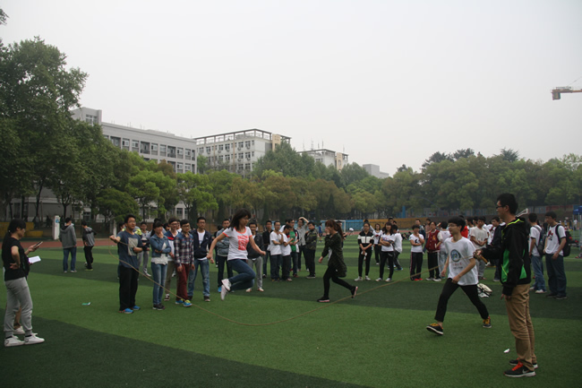 为增强此次运动会的参与性、趣味性,除了传统的比赛项目之外,还增设了许多团体趣味项目,如,钓鱼、拾贝、滚铁环、足球射门、踢毽子、篮球投篮,集体跳绳等项目,师生们热情参与,互动交流,展现出了火热的运动激情、昂扬的精神风貌和和谐的学院氛围。