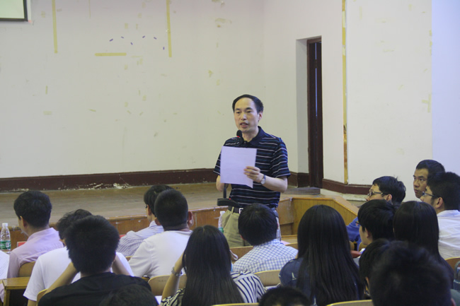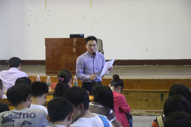 4月30日下午,2014级测绘类本科生分专业及专业方向宣讲会在信息学部徕卡厅召开。副院长许才军教授、副院长邹进贵教授、地球物理系系主任申文斌教授、测量工程研究所郭际明教授、空间定位与导航工程研究所所长张小红教授、空间信息工程研究所罗年学教授,航天航空测绘研究所副所长邓非教授,教学办公室主任汪志明,教学秘书秦咏梅,14级辅导员戴昀,14级卓越班班主任史俊波出席会议,2014级测绘类370余本科生参加宣讲会。会议由院党委副书记王中全主持。