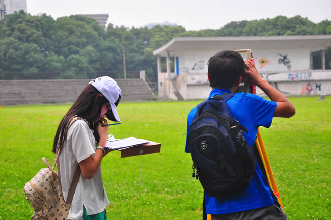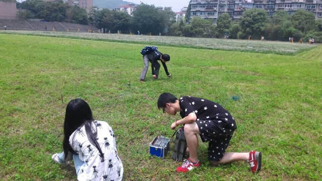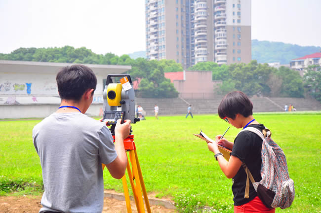 此次比赛主要是外业操作比赛,测绘工程专业分为导线测量和水准测量两个比赛项目,每个项目又分为仪器操作测量环节和数据处理环节。地球物理专业包括地磁、地电、重力三个比赛项目。在20余名专业老师和40余名学生志愿者的组织协调下,比赛从早上7点半正式开始,持续到下午5点半结束,秩序井然。