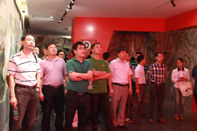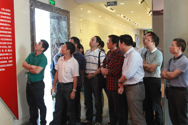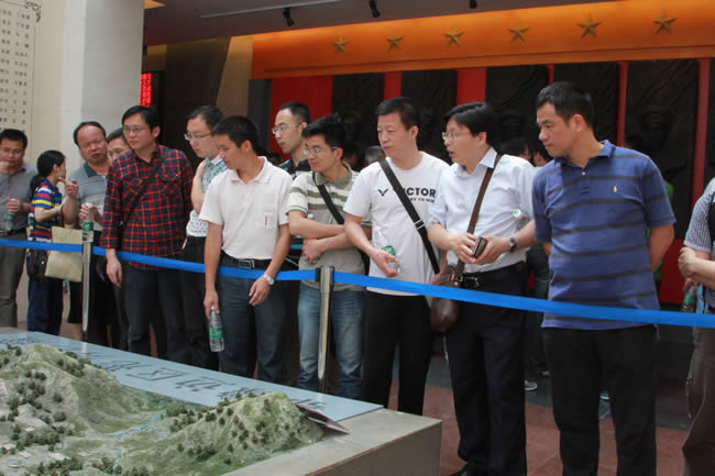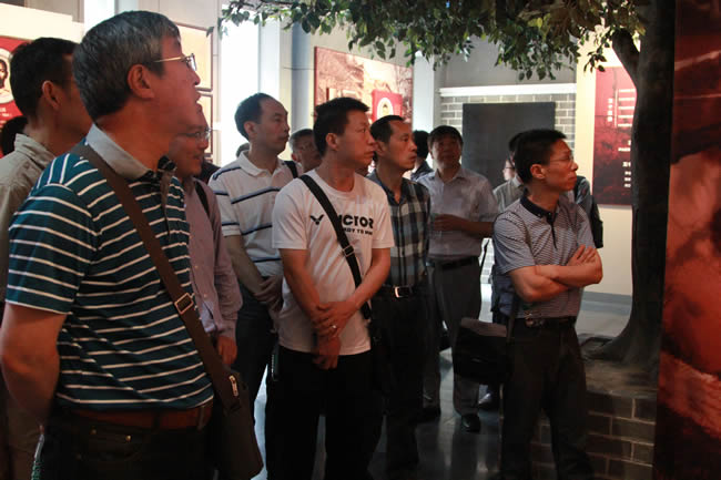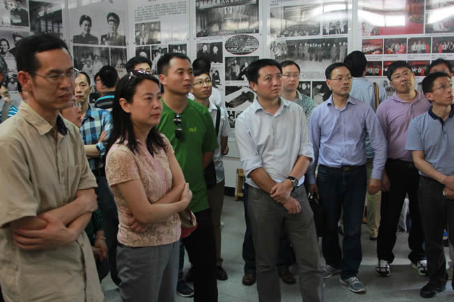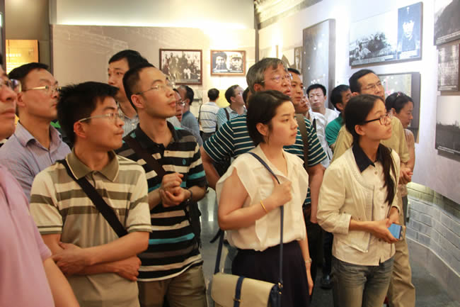 短暂休息之后,大家赶往参观的第二站:新四军第五师纪念馆及司令部旧址。新四军第五师,是在抗日战争转入战略相持阶段的艰难时刻,在华中重镇武汉外围敌后崛起的一支英雄部队。纪念馆和司令部旧址位于湖北大悟县城以南的白果树湾,南有大悟山为屏,北临泉水岭,重峦叠嶂,树木葱茂,里面陈列有五师革命斗争史料和部分革命文物。一幅幅抗战时期鄂豫边区的形势图、一张张革命先烈的照片、一件件先烈们用过的珍贵文物,再现了新四军第五师将士七年抗战及英勇突围的历史画卷,让大家对当时艰苦的生活条件和艰辛的奋斗历程有了更深的了解和体会。