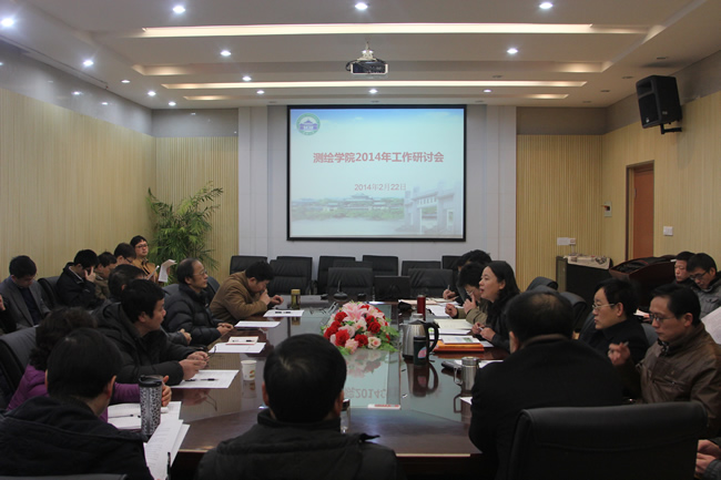 与会人员踊跃发言,在教学、学科、科研、人才等方面展开热烈、深入的讨论,对学院2014年工作要点提出了很多建设性的意见和建议。如,进一步优化课程体系,完善教学质量监控体系;增加教学互动环节,提升课堂教学质量;加强实践教学改革,增加开放性实验项目;加强教师对大学生创新创业训练的指导;定期举办大型国际学术会议,加强学术交流;进一步加强教师对学生专业课程学习的指导和引导,提升测绘课程的吸引力;加强学院宣传工作和测绘文化建设,进一步提升学院知名度和影响力等。与会师生还就学院的长远发展积极建言献策。