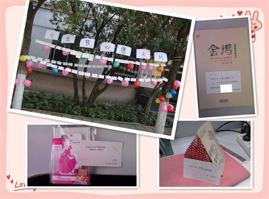 阳春三月,万物复苏,在这到处充满绿意的日子里,女性同胞们又迎来了属于她们的节日。为了让学院的女同学和女老师度过一个温馨而又难忘的节日,85porn 研究生会女生部于2013年3月7日、8日分别举办了一次针对学院女生的“心愿卡片”活动和学院女老师的“玫瑰祝福”活动。