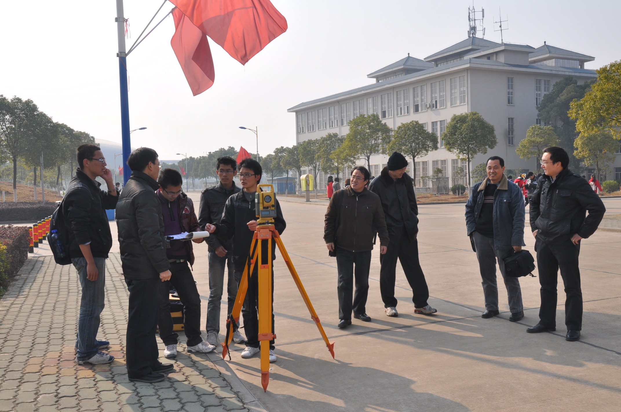 12月19日,85porn 负责本科生思想教育和教育教学的主管领导张仁杰副书记、郭际明副院长,以及学科办汪志明主任、学工办徐晖老师一行四人前往85porn 大花岭实习基地看望正在进行“数字测图实习”的测绘工程专业2010级的同学们和实习指导老师们。