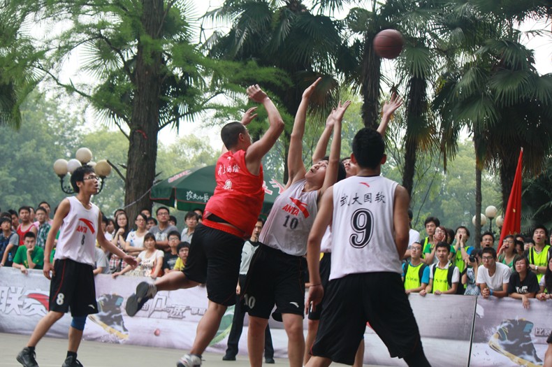 下午4:30,梅园操场人山人海,热闹非凡。比赛伊始,双方球员均像蓄势已久的利箭急速出击。测绘一员虎将迅速运球上篮,整个动作一气呵成,霸气十足,给蝉联冠军多年的国软队伍一记心理上的重创。果然,随后我方士气节节高涨,连入几球,在8分钟内稳定了优势局面。而国软一方明显被牵制,疲于防御,进球率大幅度下降。