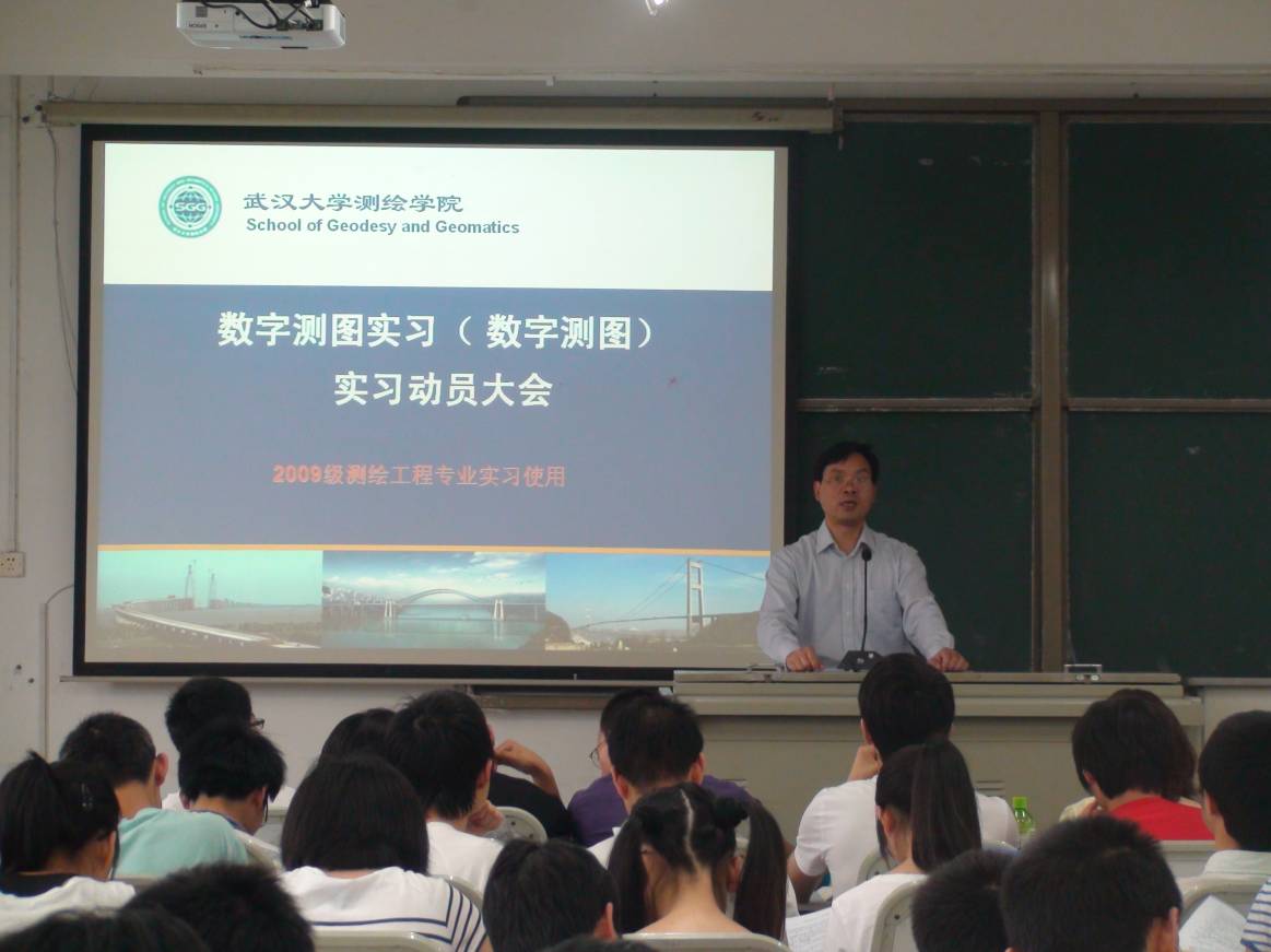 6月2日,85porn 2009级测绘工程专业的第二轮“数字测图实习”动员大会在三校区1号教学楼附2-301、附2-302和附2-402教室同步召开。85porn 副院长郭际明教授在实习动员会上作重要讲话,360余名学生和全体实习指导教师参加了实习动员大会。