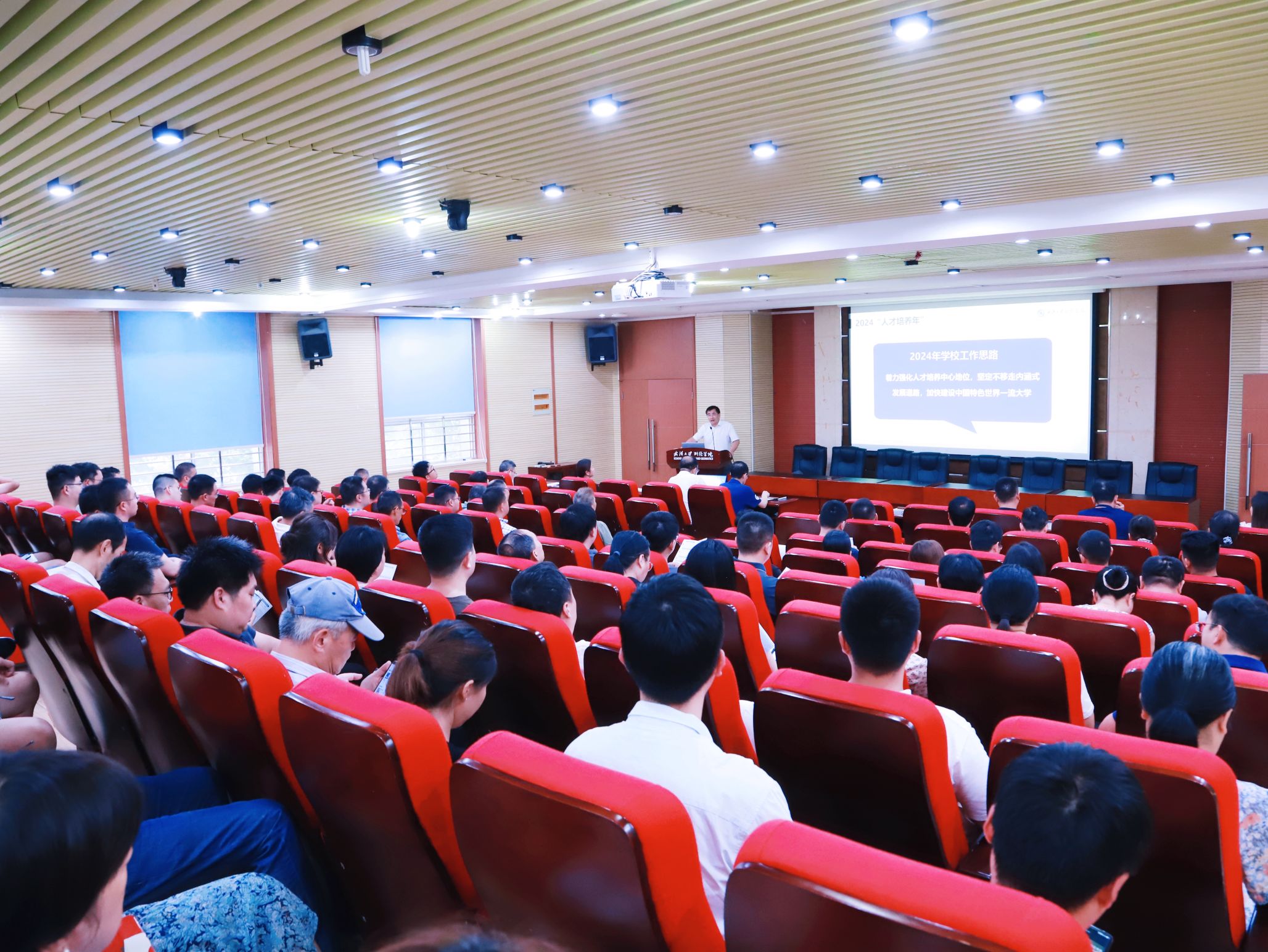 在金秋送爽、硕果累累的美好时节,学院于9月12日下午在202报告厅召开了秋季教职工大会。本次大会以“坚守奋进创佳绩,砥砺前行谱新篇”为主题,旨在总结上半年工作成果,部署下半年工作任务,进一步凝聚全院教职工的智慧和力量,推动学院建设与发展。大会由学院党委书记晏金柱主持。