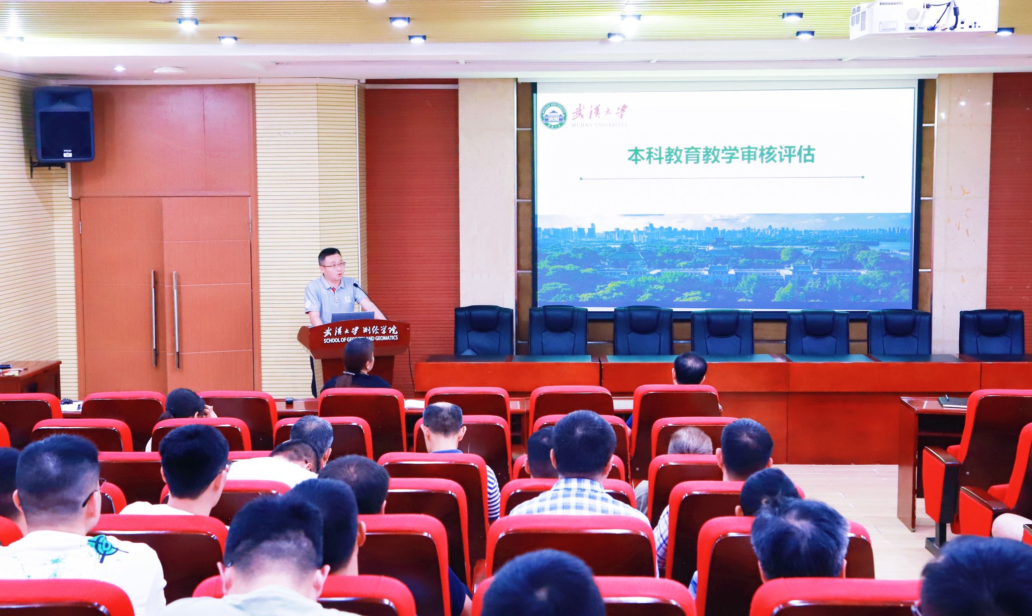 随后,副院长郭斐就本学期即将开展的本科教育教学审核评估的相关工作进行了介绍。他强调,此次审核评估不仅是对学院本科教学水平的全面检阅,更是推动高质量教育体系建设、深化教育教学综合改革、提升人才培养质量及促进学校特色发展的关键所在。郭斐就审核评估内容简述、评估流程、迎评促建中的重要工作等方面进行了重点讲解,要求大家以高度的责任感和使命感,认真准备、积极配合,确保以高质量的审核评估成果,推动学院本科教学工作再上新台阶。