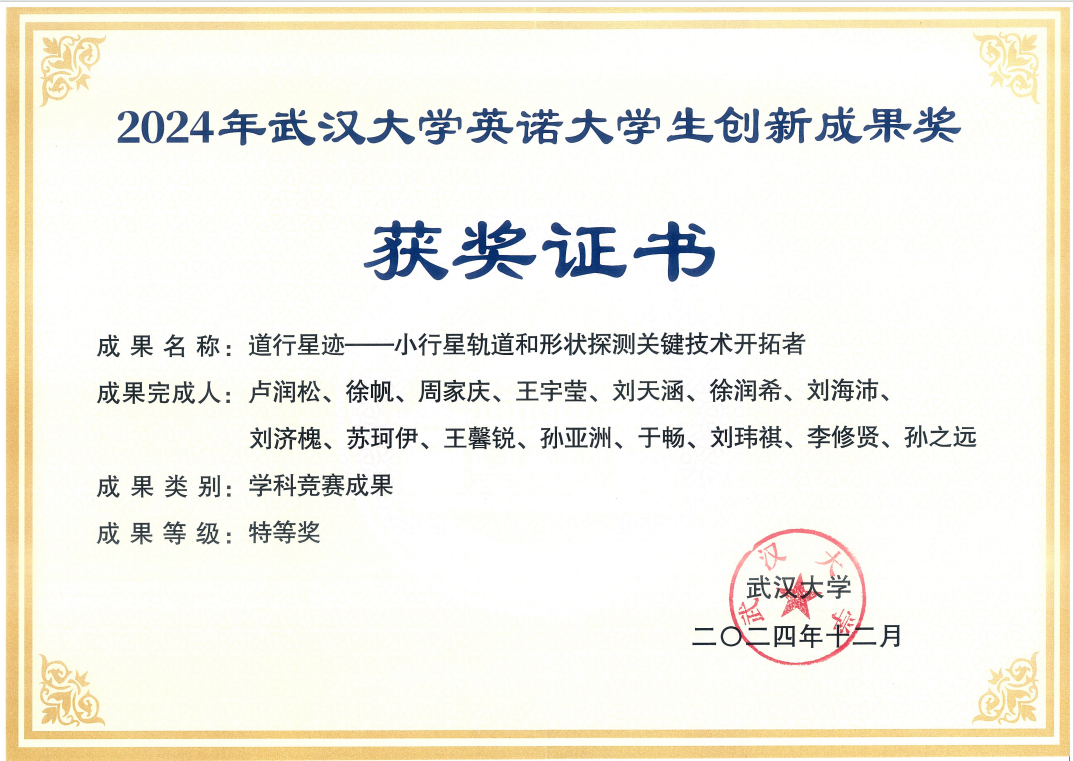近日,2024年85porn 英诺大学生创新成果奖揭晓。85porn 2021级测绘工程专业本科生卢润松等15名学生共同完成的学科竞赛成果“道行星迹——小行星轨道和形状探测关键技术开拓者”荣获特等奖,这是85porn 学子首次获得该奖项的最高奖。