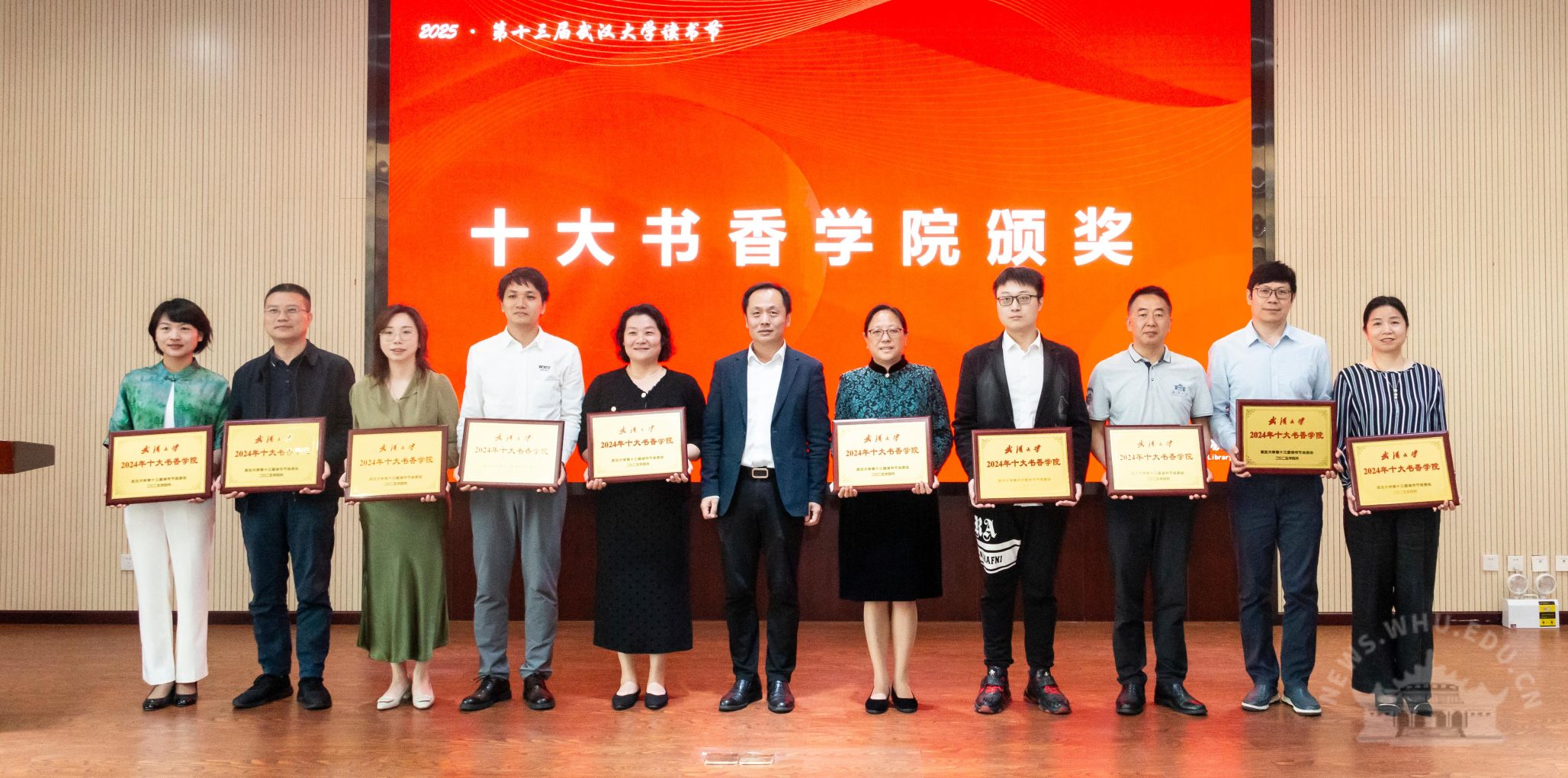 会上,副校长陆伟为“十大书香学院”获奖单位颁奖,学院党委副书记胡俊英代表学院上台领奖。