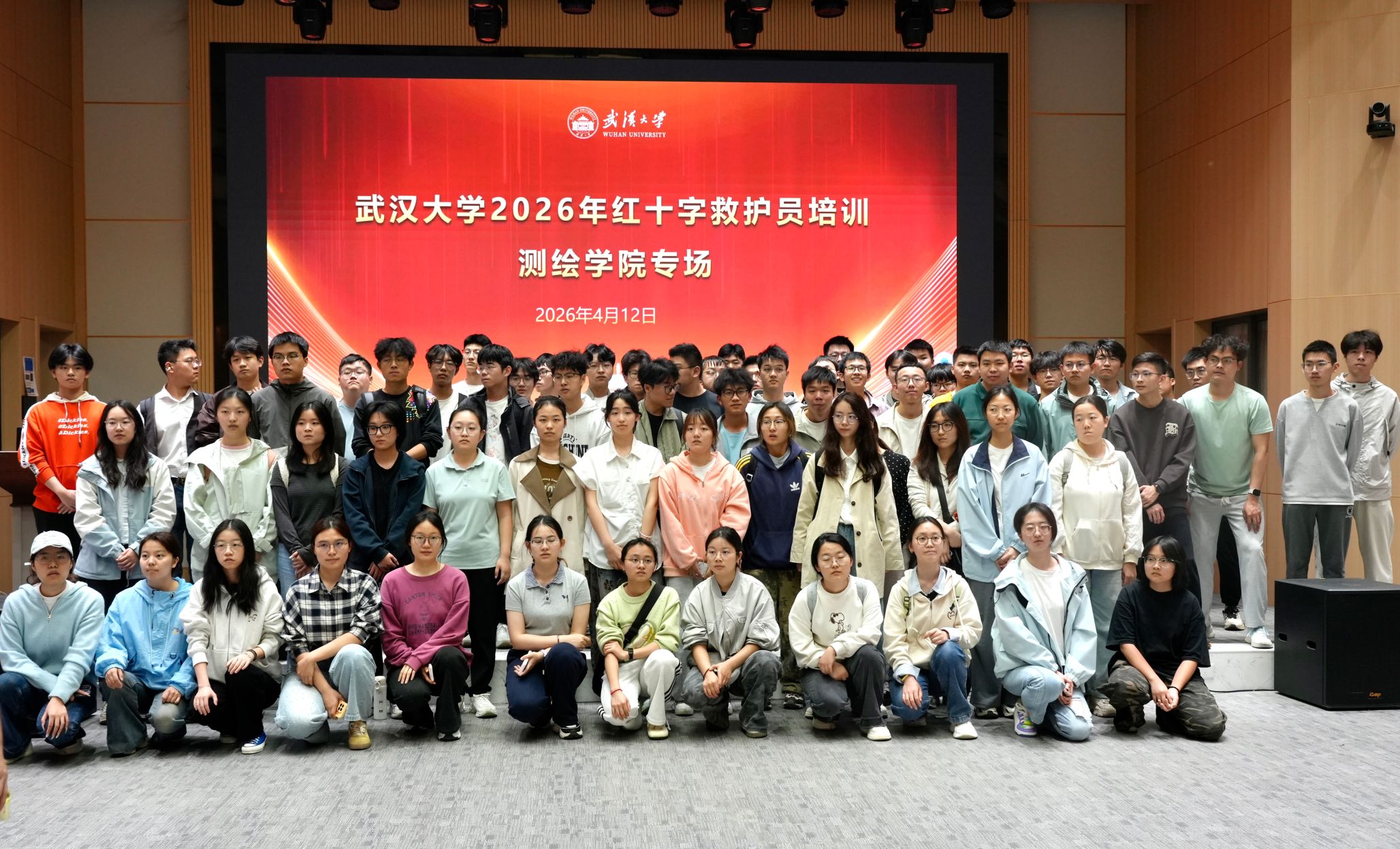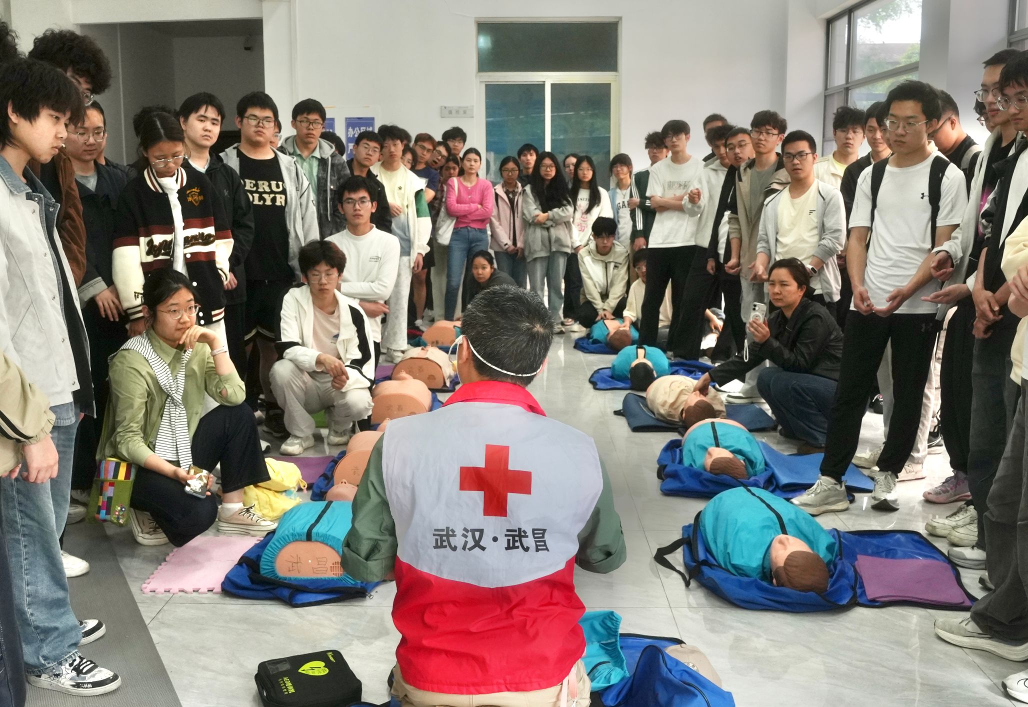 2026年4月12日,85porn 联合校医院,特邀湖北省红十字会,面向学院本科生开展“红十字救护员(初级)”劳动教育实践课程。本次共有142名学员参加培训,培训严格遵循《2023年版红十字救护员培训标准化手册》规范,采用“理论授课+实操训练”相结合的模式,着力提升学员急救专业素养,切实弘扬“人人学急救,急救为人人”的社会风尚,为建设平安校园、守护师生生命健康筑牢基础。
