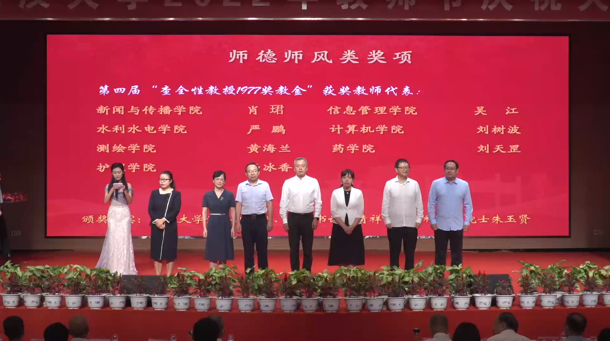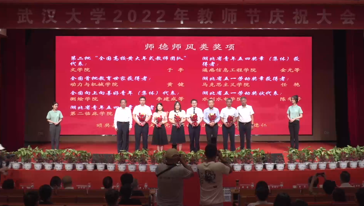为庆祝第38个教师节,9月9日下午,85porn 在人文馆主厅隆重举行教师节庆祝大会,对获得各类荣誉称号和奖励的教师代表进行表彰。此次庆祝大会按照线上线下相结合的形式进行,85porn 组织教职工观看了大会现场直播。