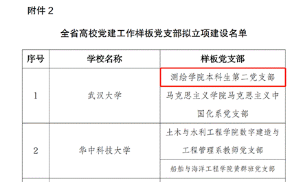 根据省委教育工委关于印发《全省高校基层党建示范创建工作方案的通知》(鄂教工委〔2022〕21号)安排,经党支部申报、学校党委推荐、专家评审、厅党组会审议、结果公示,遴选产生了60个全省高校党建工作标杆院系、100个全省高校党建工作样板党支部培育创建单位。