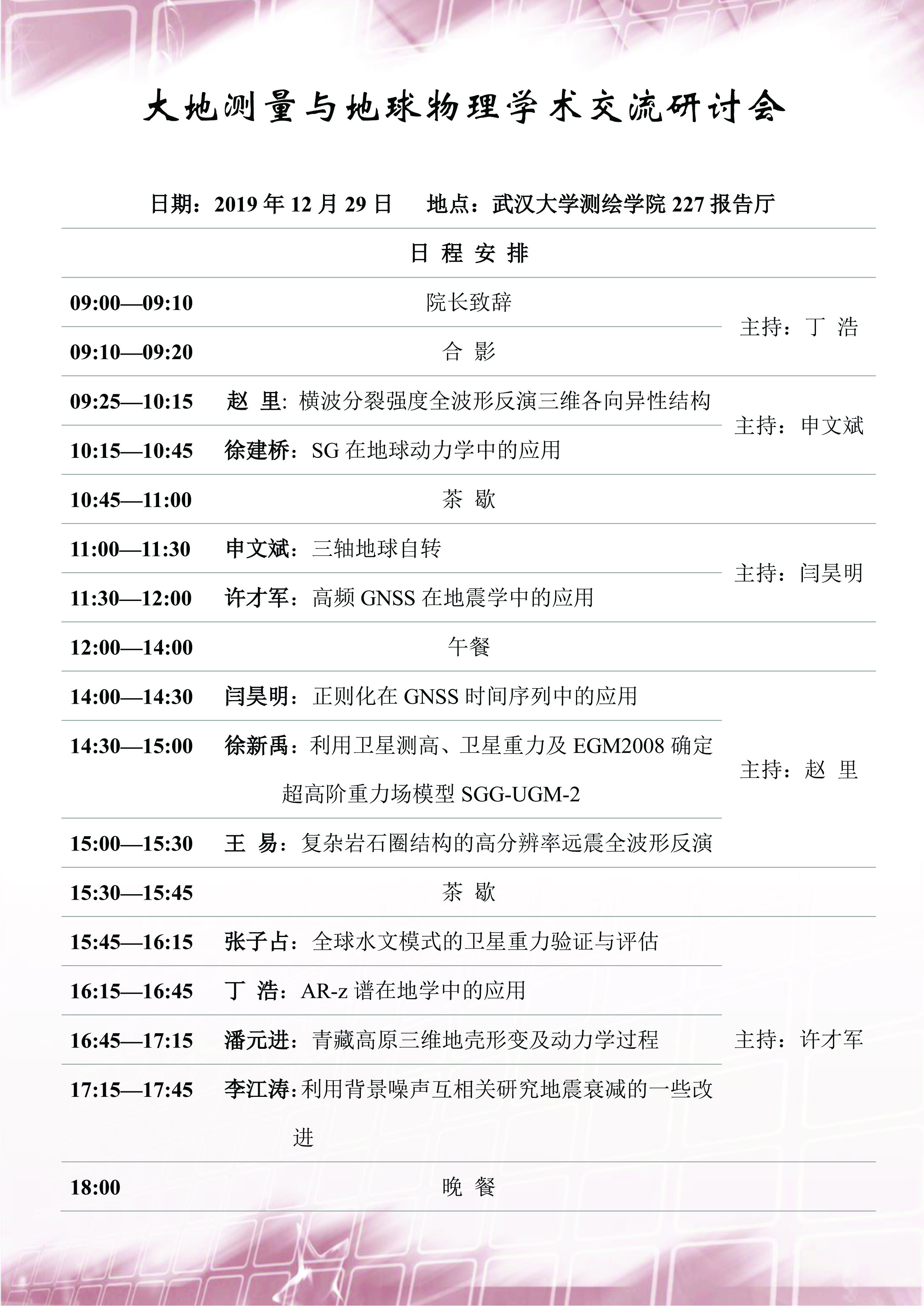 2019年12月29日大地测量与地球物理学术交流研讨会