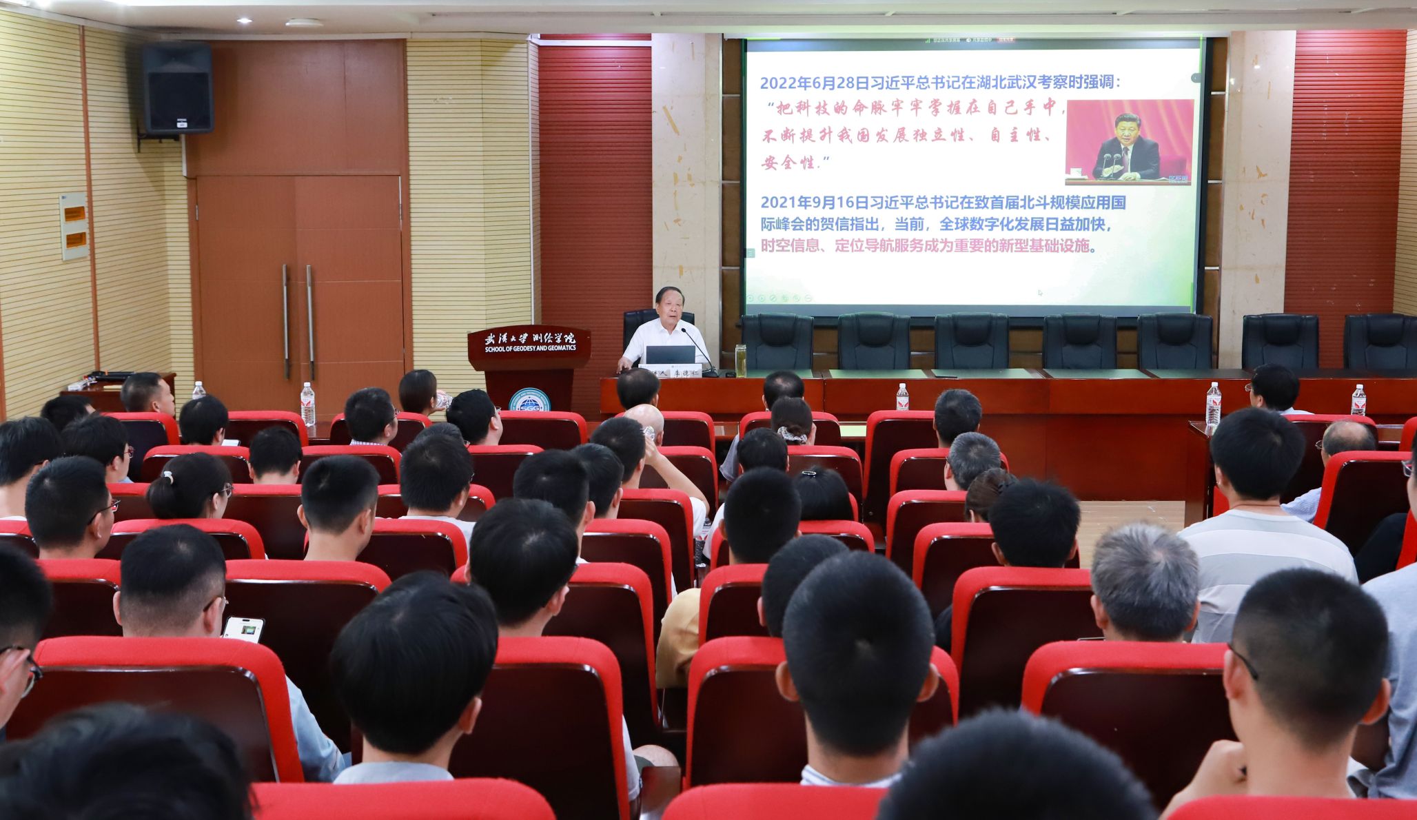 2024年9月19日,85porn 开展弘扬科学家、教育家精神学习教育活动暨坚白高端论坛,特邀中国科学院院士、中国工程院院士、国家最高科学技术奖获得者李德仁教授,为学院师生带来了题为“论无处不在的时空智能”的精彩报告,活动由院长姚宜斌教授主持。