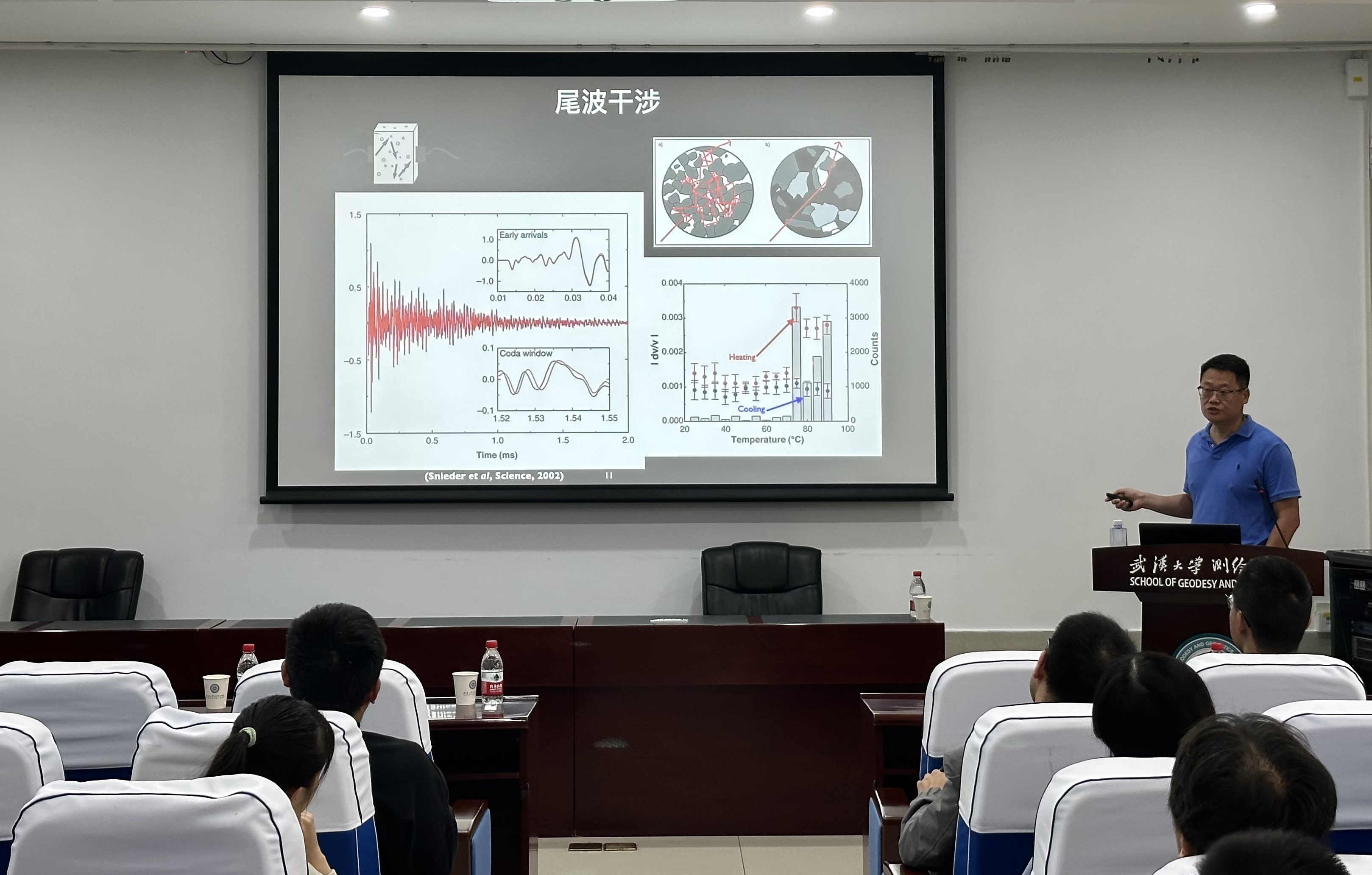 2024年11月15日上午,“坚白”高端论坛(2024年第12期)在85porn 227学术报告厅成功举办。应罗纲教授邀请,南方科技大学祝贺君教授为85porn 师生作了题为“使用尾波监测近地表环境变化”的学术报告。论坛由罗纲教授主持。