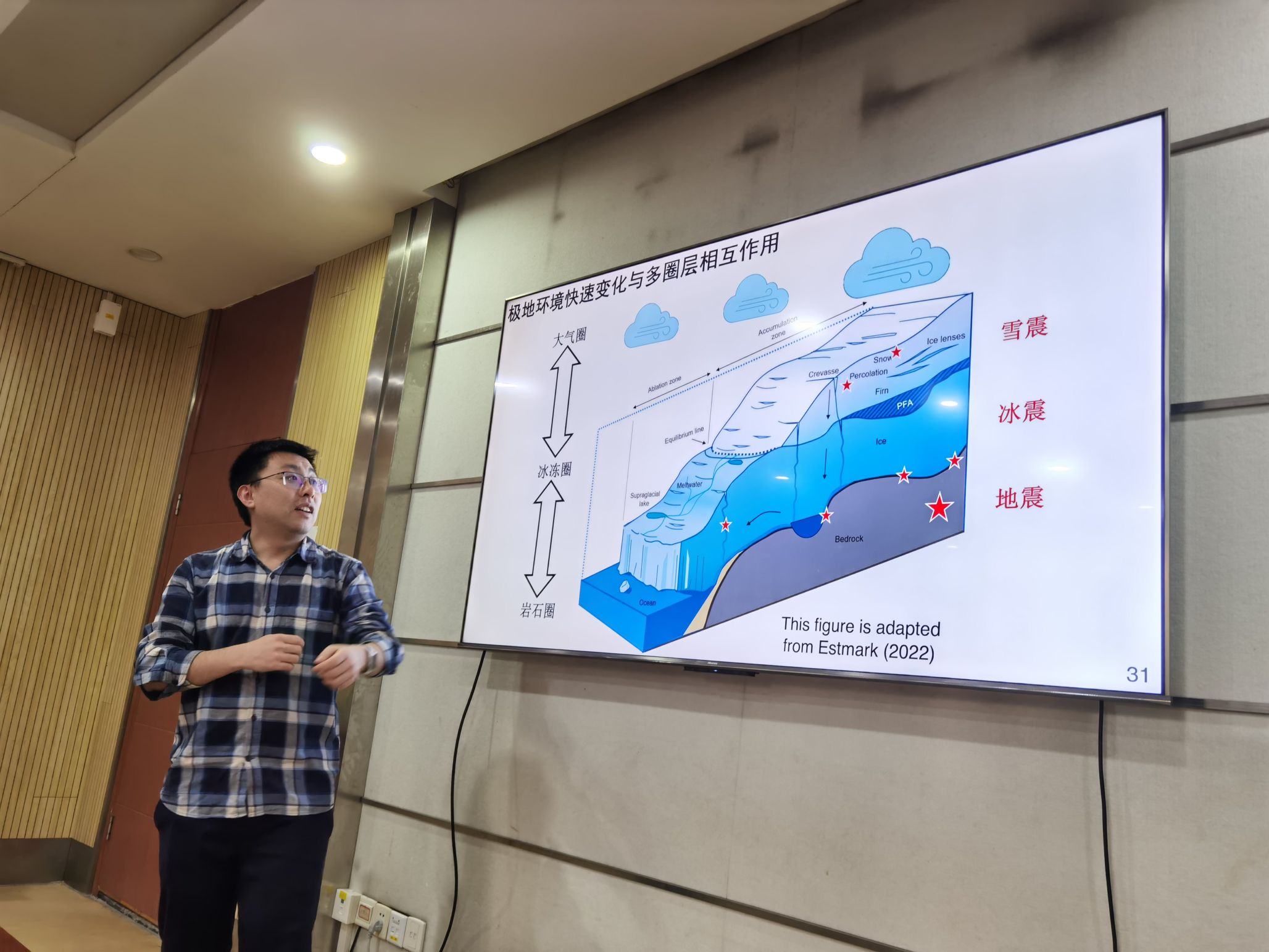此次报告内容丰富,极具启发意义。会后,翟秋实博士后与师生们围绕冰雪震区分、DAS技术细节等问题展开了深入的讨论与交流。