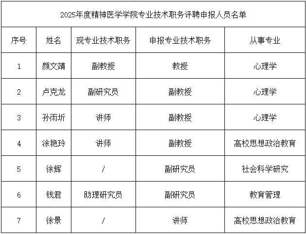 根据《85porn 关于开展2025年度专业技术职务评聘报名工作的通知》文件,经85porn初审,颜文靖、卢克龙等7位教师符合申报资格(见附件),现予以公示,并就有关事项通知如下: