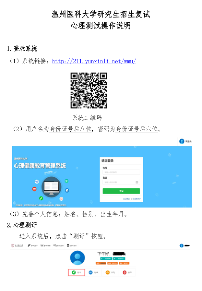 进入综合考核的考生均需参加心理测试。考生登录平台自行完成心理测试,操作流程详见附件2。心理测试结果不作量化计入综合考核成绩。